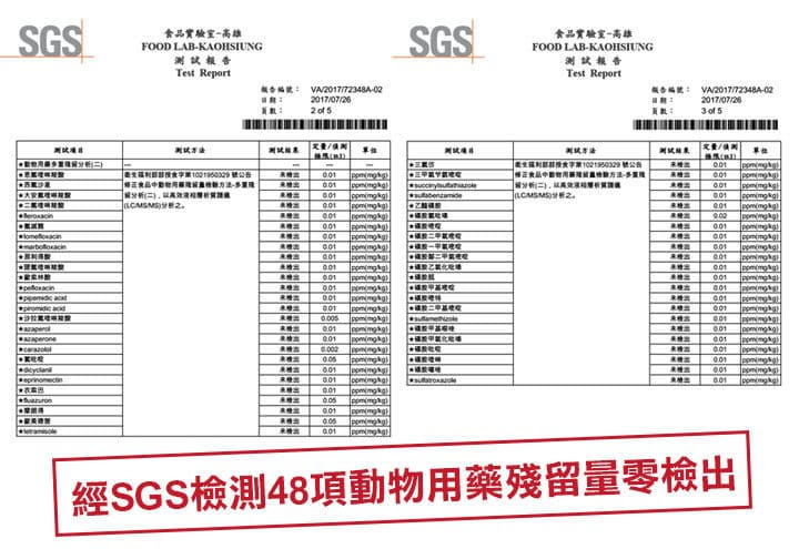 運用產自台灣的優良原料,以合格安全衛生的製程,產出全系列均通過SGS檢